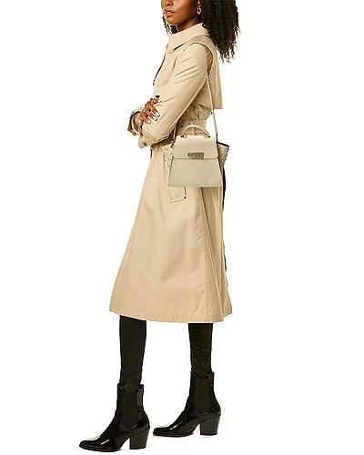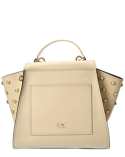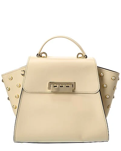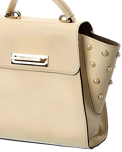 - Eartha Top Handle Pearl Lady Leather Satchel in swan leather and gold-tone hardware with stud embellishments and exterior pocket
