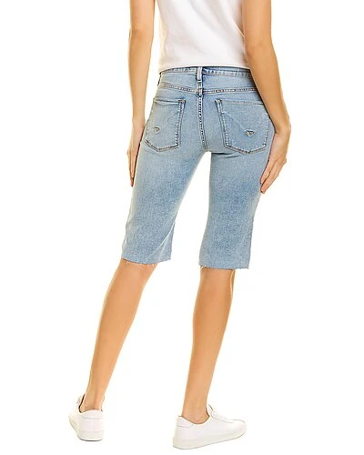 - Amelia Short in new dawn with belt loops, whiskering and fading details, raw edge hem, distressed detailing, and classic five-pocket styling