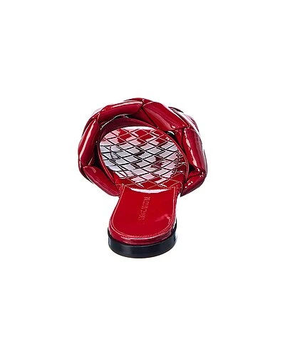 - The Lido Intrecciato Patent Sandal in apple candy patent intrecciato leather with squared sole