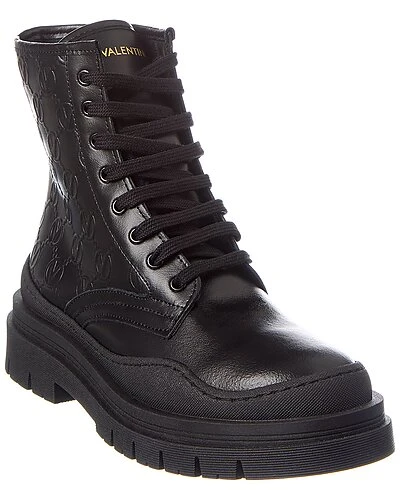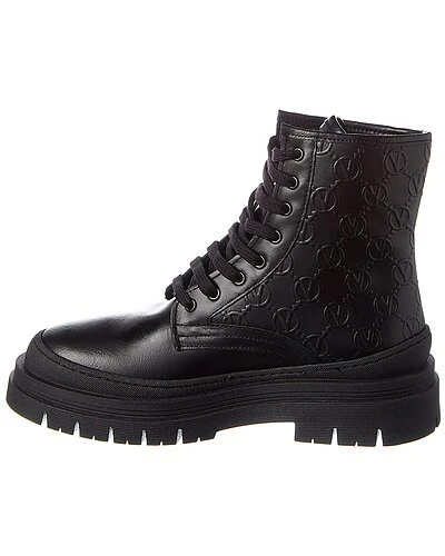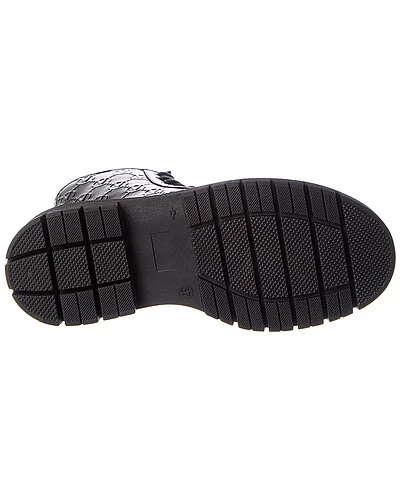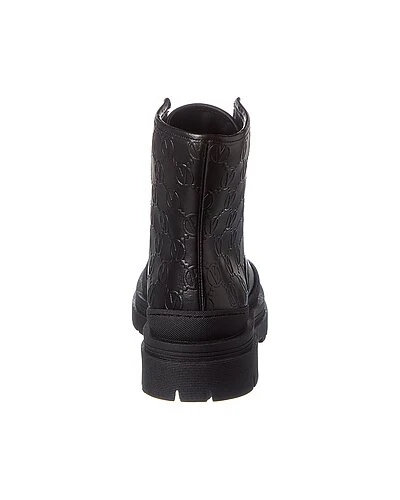 - Ivana Leather Boot in black monogram embossed leather with graphic logo accent