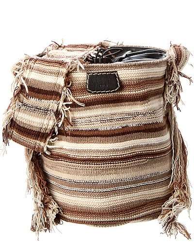 - Jorge Medium Cashmere & Leather Bucket Bag in black multicolor cashmere and leather and gold-tone hardware with fringe trim