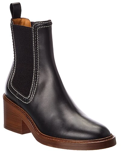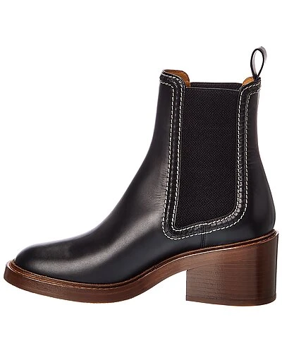 - Mallo Leather Bootie in black leather with contrast stitching and pull-on tab