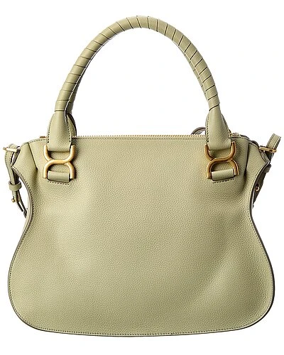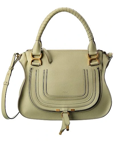 - Marcie Medium Leather Satchel in faded green leather and gold-tone hardware with exterior pocket
