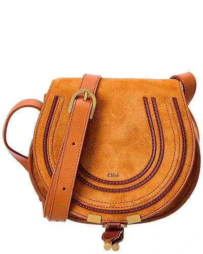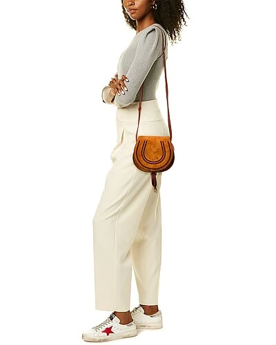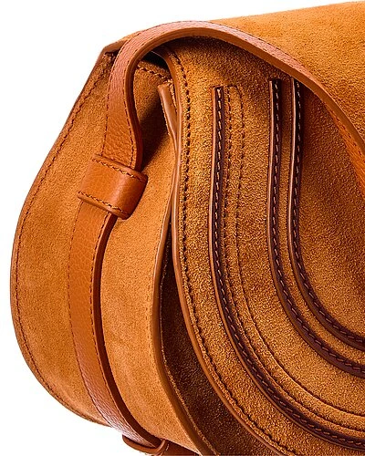 - Marcie Small Suede Crossbody in henna orange suede with gold-tone hardware