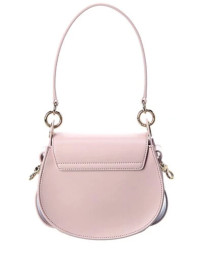 - Tess Small Leather & Suede Shoulder Bag in misty lavender leather and suede with gold-tone hardware, embossed logo accent and classic canvas lining