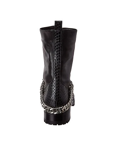- Horse Guarda Leather Boot in black leather and silver-tone hardware with chain accent