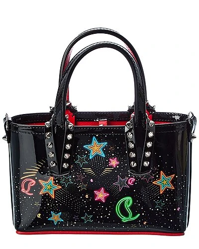 - Cabata Nano Patent Tote in black printed patent leather and silver-tone hardware with spike embellishments