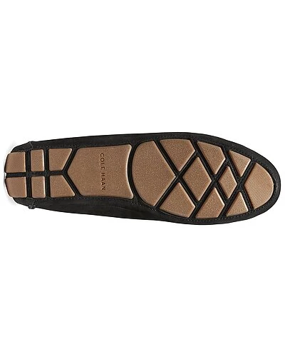 - Evelyn Bow Leather Driver in black nubuck and light gold-tone hardware with round toe and moc toe design