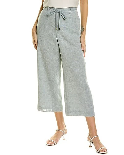 - Columbus Crop Wide Leg Linen Pant in okra multicolor with dual side on-seam pockets and elasticized drawstring waistband