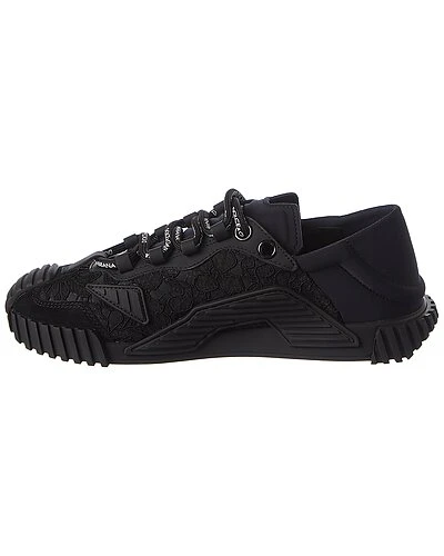 - NS1 Lace & Leather Sneaker in black lace, neoprene and leather with logo accents