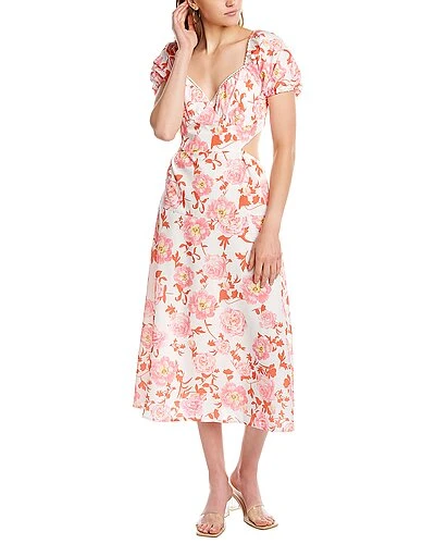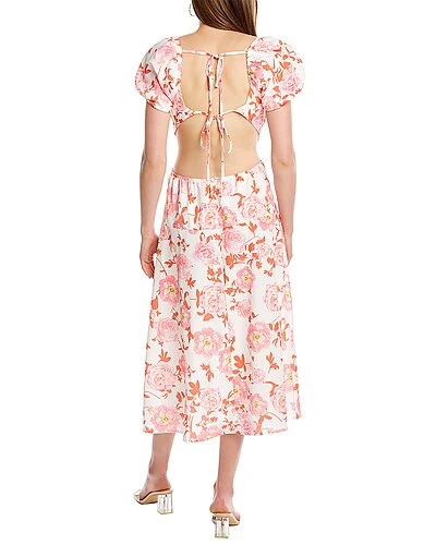 - Design details: V-neck, puffed sleeves, elasticized cuffs, and open back