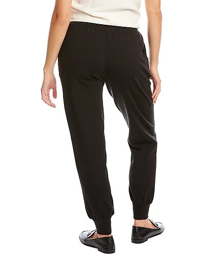 - Jogger in noir & gold with dual front angled pockets and elasticized drawstring waistband