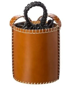 - Miastella Mini Leather & Suede Bucket Bag in grey leather and suede