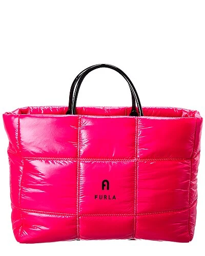 - Furla Opportunity is a large shopping bag perfect for keeping your personal belongings with you at all times. Crafted from shiny nylon fabric, its perfect for free time or to travel. The double-handle model is finished with a custom Furla lettering and Arch logo pattern on the front. Gold-tone hardware.