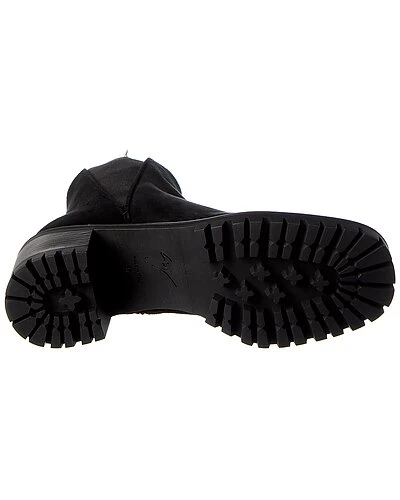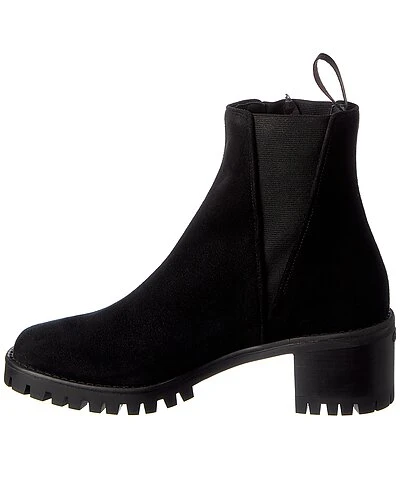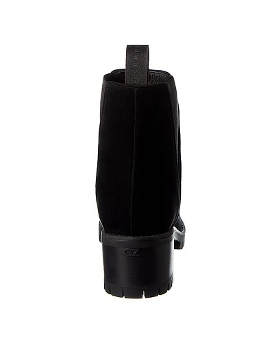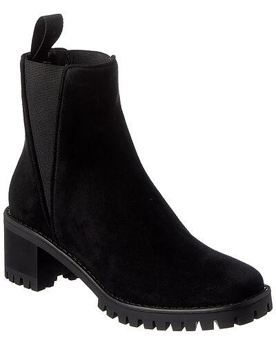 - Before 45 Suede Bootie in black suede with pull-on tab