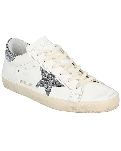 - Crystal Superstar Leather Sneaker in white/silver leather with logo branding