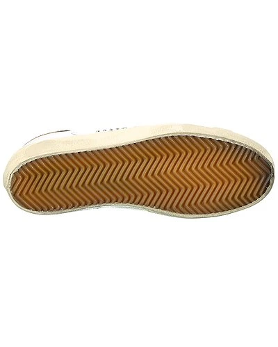 - Superstar Leather & Suede Sneaker in white and brown leather and suede and silver-tone hardware with distressed design and glitter star accent