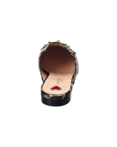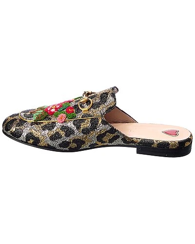 - Princetown Slipper in gold metallic jacquard textile and light fine gold hardware with horsebit detail and floral embroidery