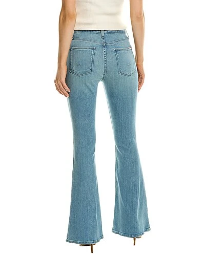 - Heidi High-Rise Flare in Nadia with belt loops, whiskering and fading details, distressed knees, and classic five-pocket styling