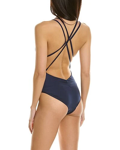 - Design details: plunging neckline, strappy back, ruched bottom and removable soft cups
