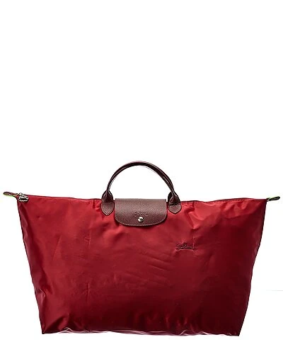 - Le Pliage Green Tote in red canvas with silver-tone hardware and foldable design