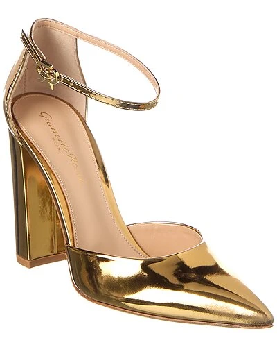 - Piper Anklet 100 Leather Pump in Mekong gold leather and gold-tone hardware with logo buckle