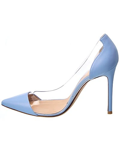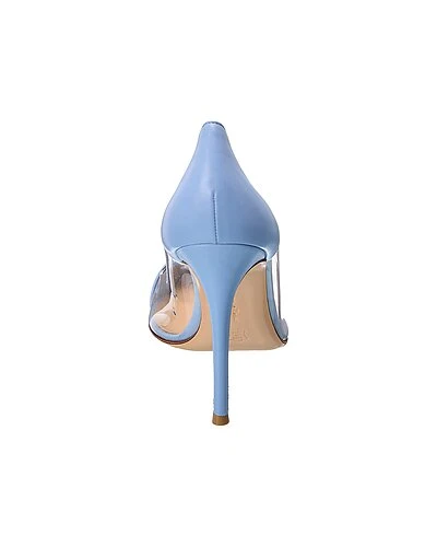 - Plexi 105 Leather & Vinyl Pump in blue leather and transparent vinyl with pointy-toe