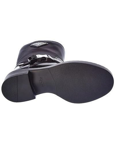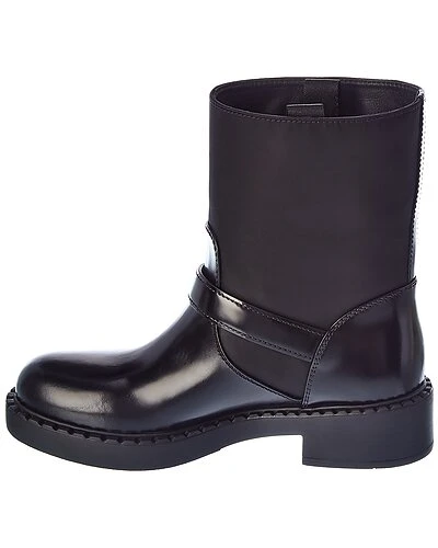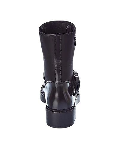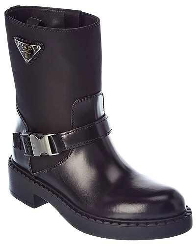 - Logo Nylon & Leather Boot in black nylon and leather and steel finish hardware with logo accent and strap detail