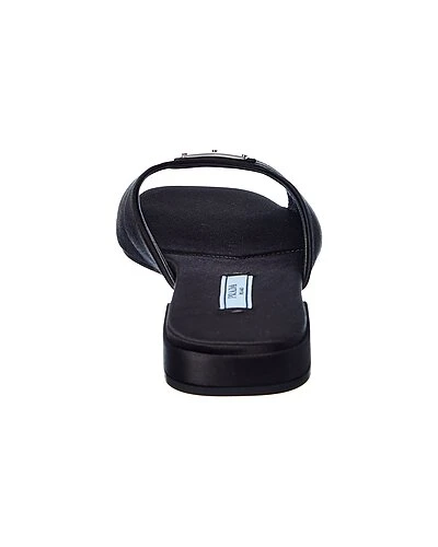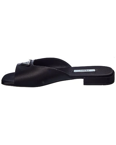 - Logo Satin Sandal in black satin and steel finish hardware with squared peep toe