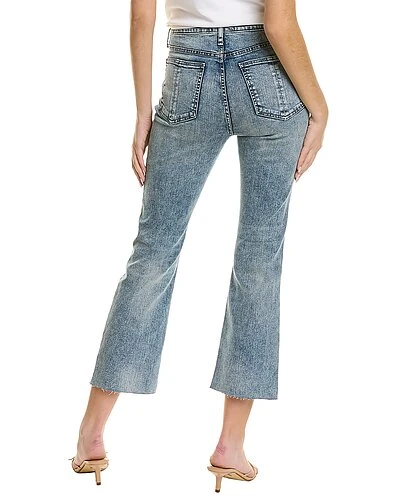- Nina High-Rise Ankle Flare in pearl1 with belt loops, whiskering and fading details, raw edge hem, and classic five-pocket styling