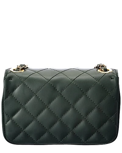 - Color/material: hunter green quilted leather