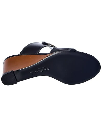 - Chaim Leather Wedge Sandal in black and brown leather and gold-tone hardware with Gancini details