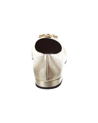- Hailey Leather Flat in gold leather and gold-tone hardware with crystal embellishments