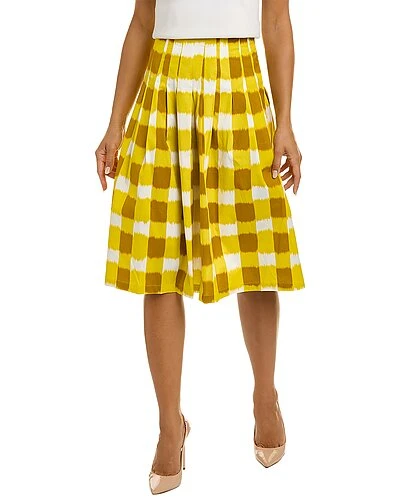 - Zelda Midi Skirt in ghana check white and yellow with pleated design and two front pockets