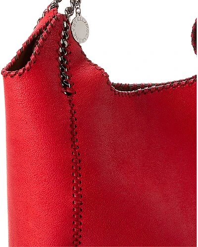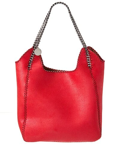 - Falabella Large Tote in lipstick vegan-friendly faux suede and silver-tone hardware with logo charm