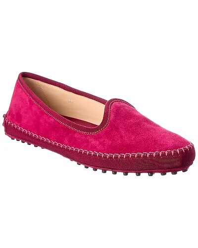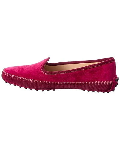 - Gommino Suede Flat in pink suede with grosgrain trim