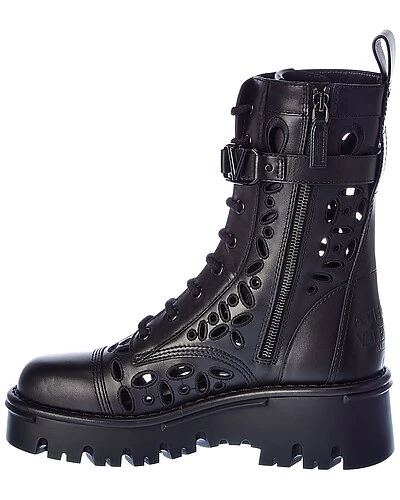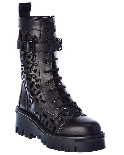 - Atelier San Gallo Leather Boot in black leather and gunmetal-tone hardware with eyelet detailing