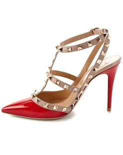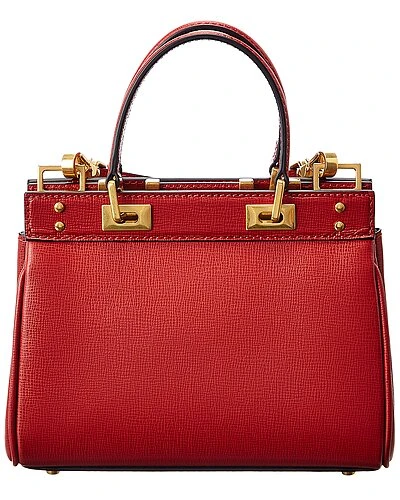 - Rockstud Alcove Small Grainy Leather Satchel in red leather and gold-tone hardware with front pouch pocket