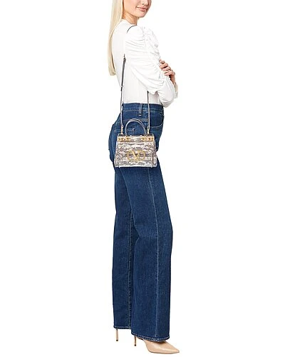 - Rockstud Alcove Small Snake-Embossed Leather Satchel in white snake-embossed leather and gold-tone hardware with VLogo accent and exterior flap pocket