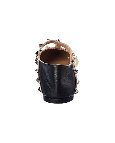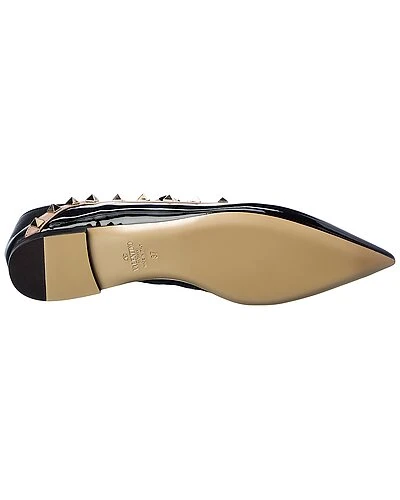 - Rockstud Caged Patent Flat in black patent leather with platinum-finish rockstuds and powder leather trim