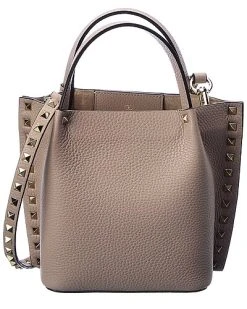 - Rockstud Grainy Leather Tote in powder grainy leather with platinum-finish rockstuds