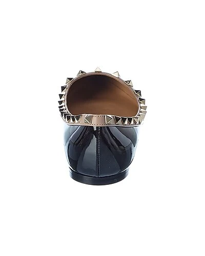 - Rockstud Patent Flat in black patent leather with platinum-finish rockstuds and powder leather trim