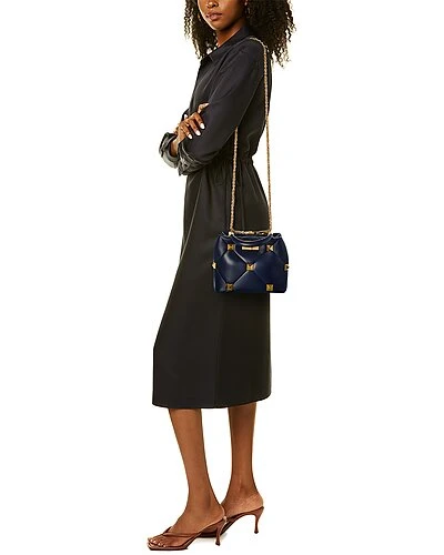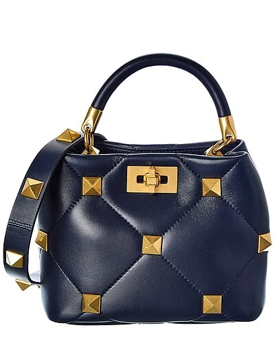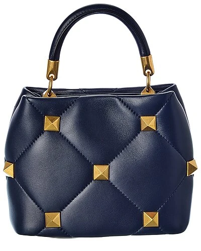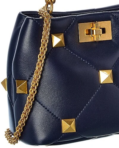 - Small Roman Stud Leather Shoulder Bag in blue quilted leather and gold-tone hardware with Roman studs and chain strap