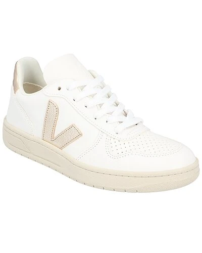 - V-10 Chromefree Leather Sneaker in white platine calf leather with V-Logo on the side