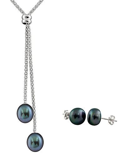 - Lustrous black freshwater pearls measure 7-7.5mm