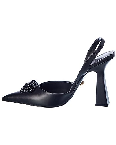 - La Medusa Leather Slingback Pump in black leather with Medusa head logo accent