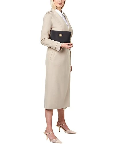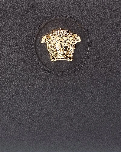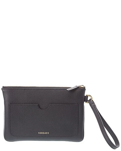 - Medusa Leather Clutch in black leather with gold-tone hardware and logo accent